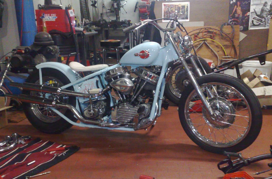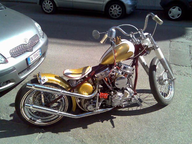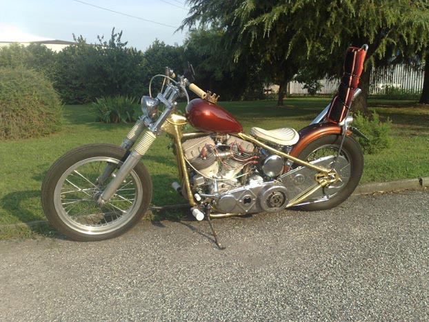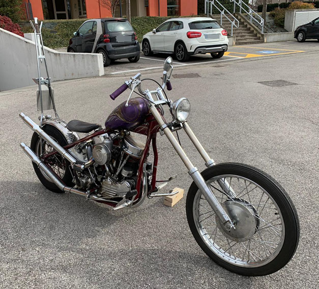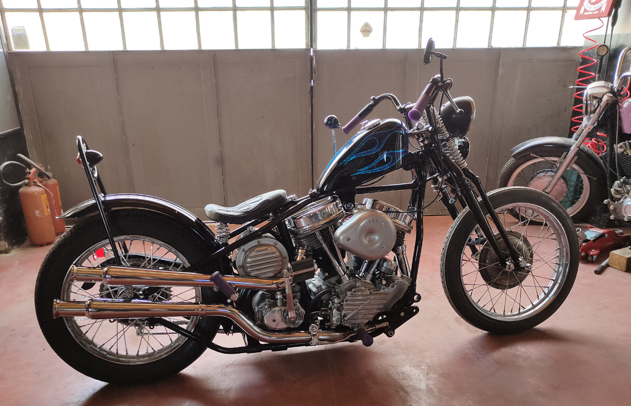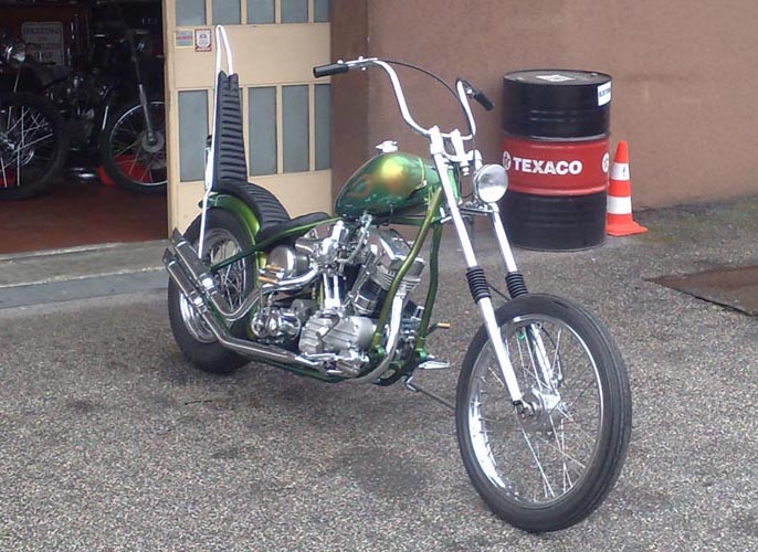 JONATHAN chopper realizzato in varie fasi tra il 1984 ed il 1996. Motore shovel 1200 del 1973, cambio 4 marce "ratchet top" Ultima versione 2023 |